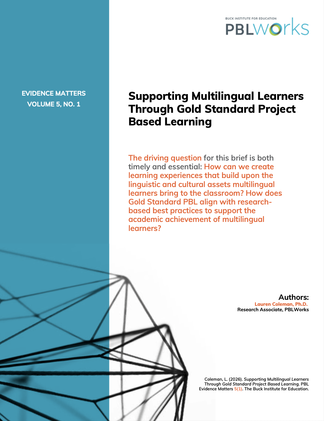 Citation: Coleman, L. (2026). Supporting Multilingual Learners Through Gold Standard Project Based Learning. PBL Evidence Matters 5(1). The Buck Institute for Education.